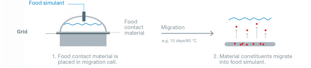 The safety of food packaging can be determined with a wide range of standardised migration tests, which use different setups to simulate contact with foodstuff.